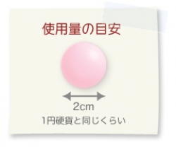 ①適量を指先にとり、ひたい、ほほ、はな、あご、くびなどに配り、らせんを描きながら2~3分ほどマッサージします。