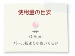 ①適量を指先にとり、ひたい、ほほ、はな、あご、くびなどに配り、軽くマッサージするようにのばして顔全体になじませます。